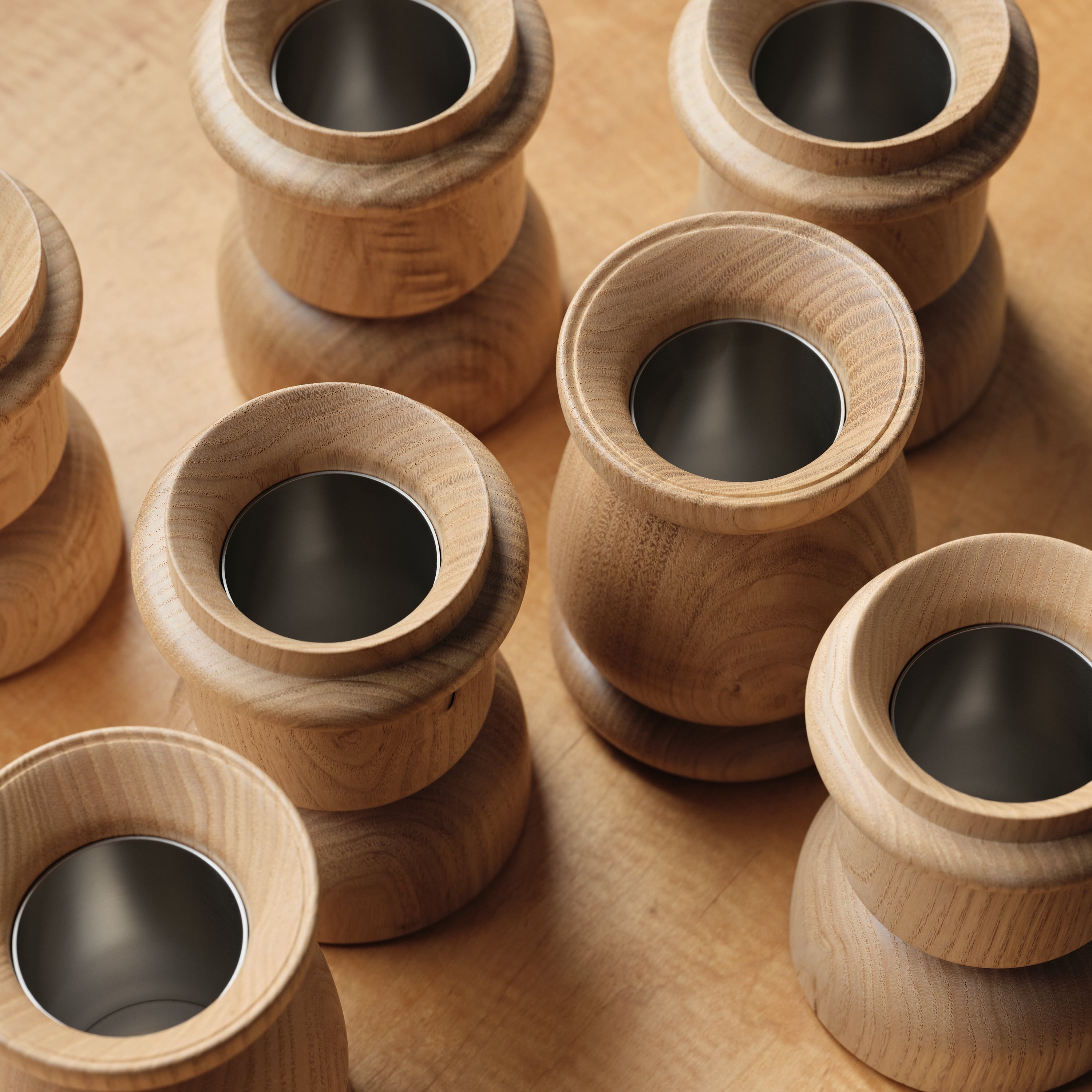 約120角の厚みのある栗の木から削り出したボトルに、中はステンレス仕様。